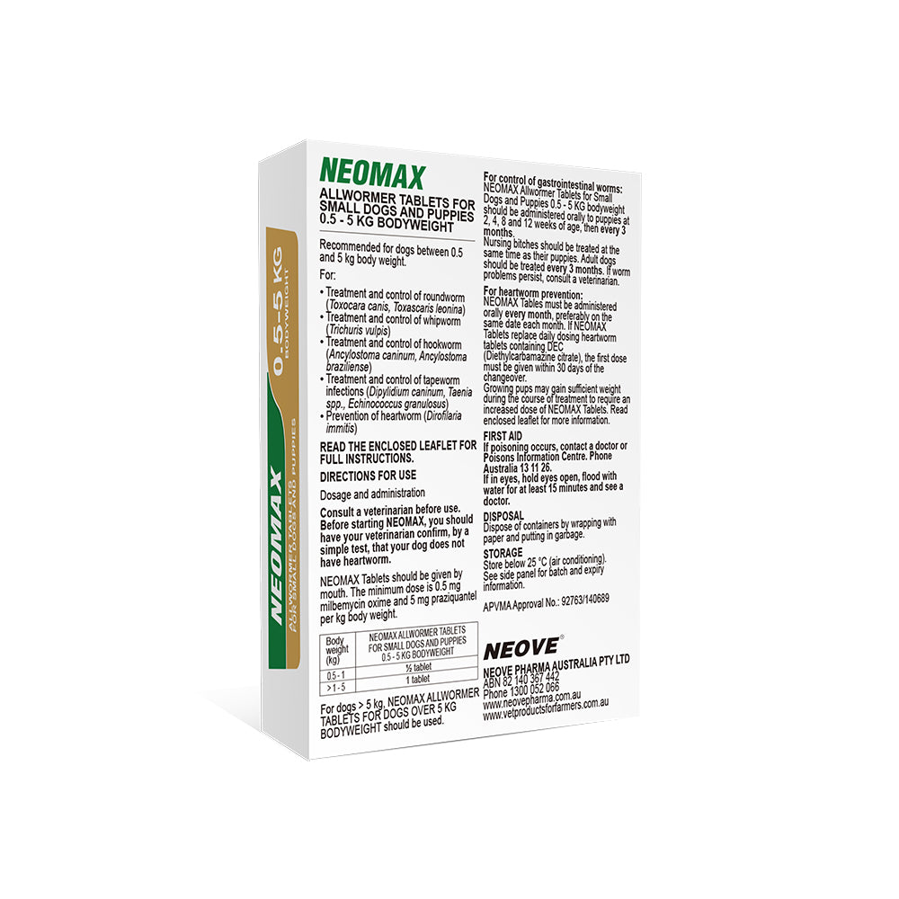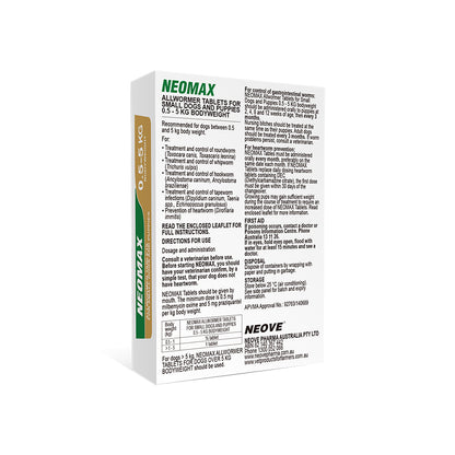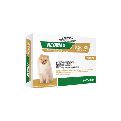 Neomax Allwormer Small Dog & Puppy 0-5kg provides comprehensive protection against various worms, including heartworm, for small dogs and puppies. Invest in their well-being today.