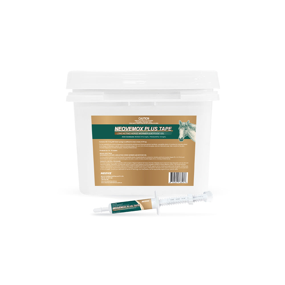 NEOVEMOX PLUS TAPE LONG ACTING HORSE WORMER AND BOTICIDE GEL provides effective treatment in a single dose against encysted stages of small strongyles, including developing stages (DL), late encysted stages (LL3/ EL4), and assists in controlling early encysted stages (EL3), including inhibited larvae.