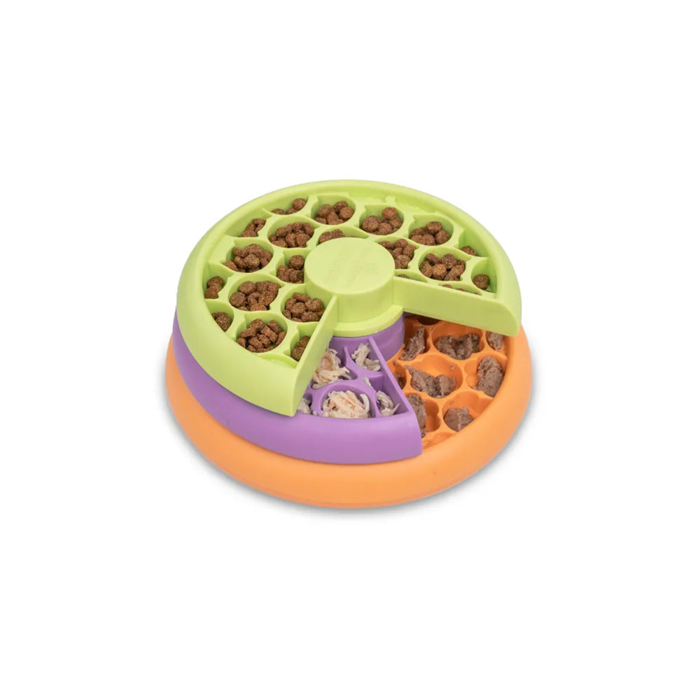 - Puzzle and feeder in one; cats spin the three layers to reveal hidden treats inside