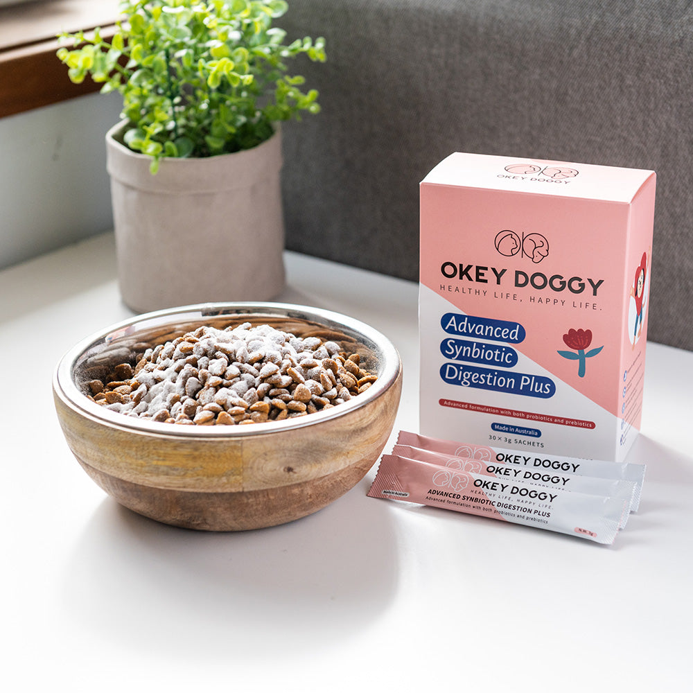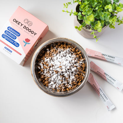 Are you seeking to improve your pet's digestion and overall health? Introducing Okey Doggy Advanced Synbiotic Digestion Plus, this natural formulation contains both probiotics and prebiotics, which work together to support the entire body with a special focus on improving digestive health and maintaining healthy skin and coat. So give your furry friend the gift of better health today with OKEY DOGGY Advanced Synbiotic Digestion Plus!