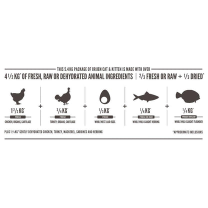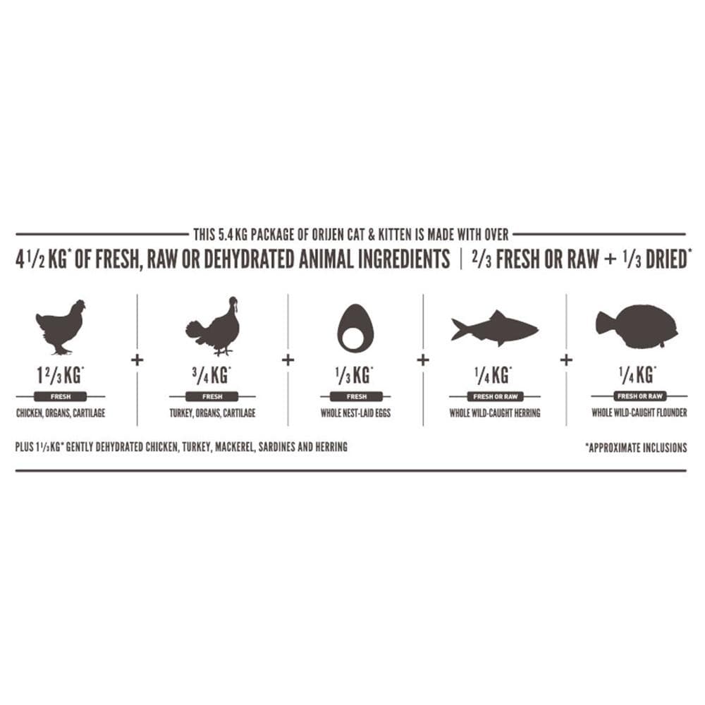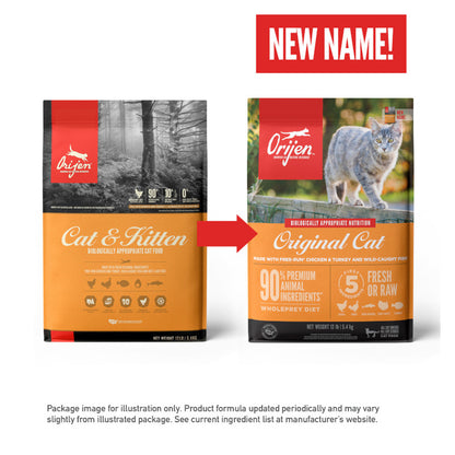 - Rich in healthy fats animal fats, is essential for your cat’s peak health that’s why ORIJEN Biologically Appropriate Original Cat & Kitten Food feature naturally occurring, non-rendered fats from fresh, quality animal ingredients.