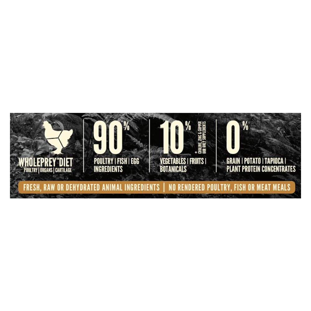 - Nutrient-dense WholePrey ratios of fresh, quality animal ingredients from meat, organs, and cartilage or bone, plus fresh, whole fish and cage-free eggs provide a natural source of virtually every nutrient your cat needs.