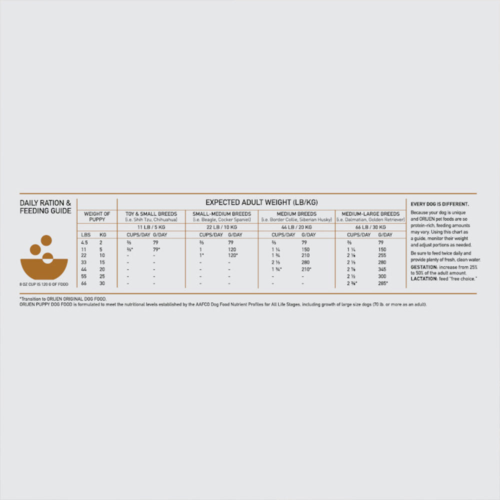 - We suggest starting with the guides by referring to the back of the bag, and then monitoring their weight and adjusting portions as needed.