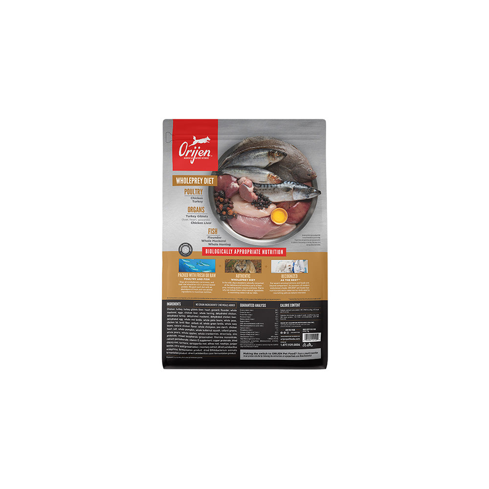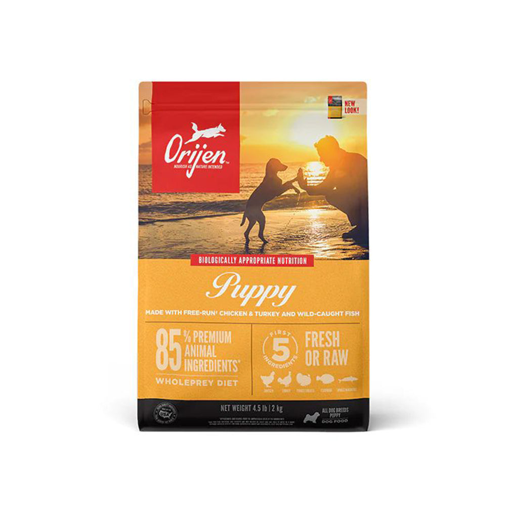 Fresh- or raw-tasting chicken, turkey, eggs and wild-caught fish served up a super delicious combo recipe to the young pup. ORIJEN Puppy Biologically Appropriate Dry Dog Food is a freeze-dried puppy food that that is rich in protein and fat from whole animal ingredients to support peak growth and development. This recipe is brimming with protein from free-run chicken and turkey, wild-caught fish, and cage-free eggs for a raw flavour your dog craves very much.