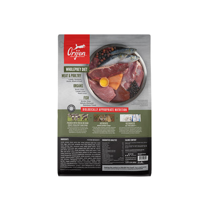 - Our authentic WholePrey diet features the most succulent parts of the prey like meat and fish, organs and bone to mimic what your dog’s ancestors consumed in the wild.