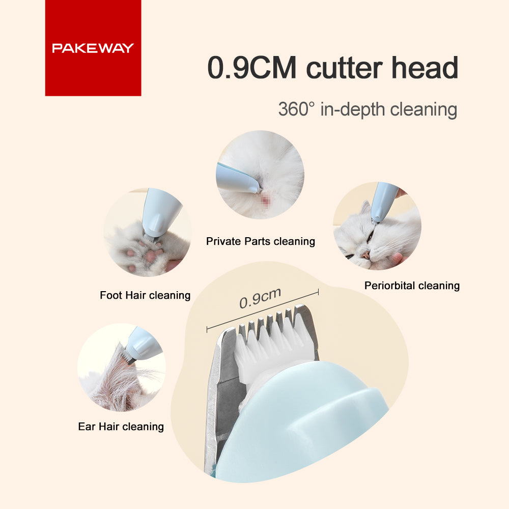 PAKEWAY Blue & Gray Low Noise Rechargeable Electric Pet Trimmer is a discreet and convenient way to keep your pets clean and trimmed. Handheld trimmer for removing unwanted hair from your pet's feet, periorbital area, and ears, and is also great for cleaning up your pet's fur - just make sure you don't use it on their skin! Thanks to its low noise design, you can use it with confidence in any setting. Plus, it comes with a rechargeable battery so you can take it with you wherever you go.