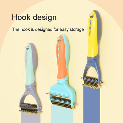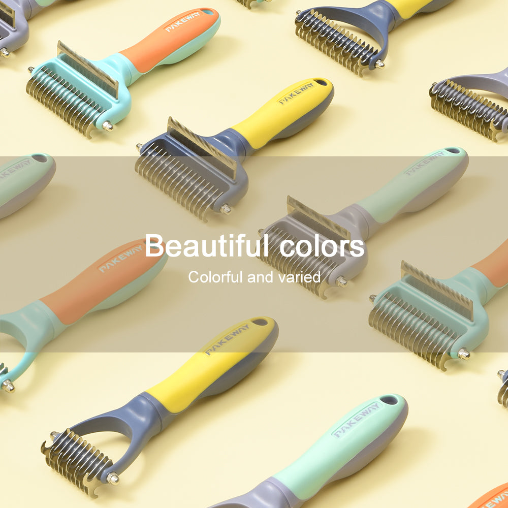 Do you have a hairy pet that's constantly tangled and matted? Well, the PAKEWAY Purple & Green T10 Pet Dematting Rake is here to help by removing dead hair and undercoat and breaking up any knots or shedding along the way. With its soft grip and anti-slip handle, it's easy and comfortable to use - even for those with sensitive hands.