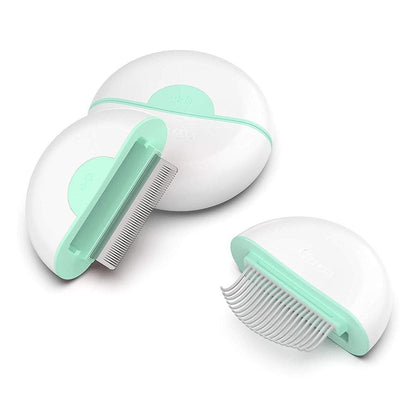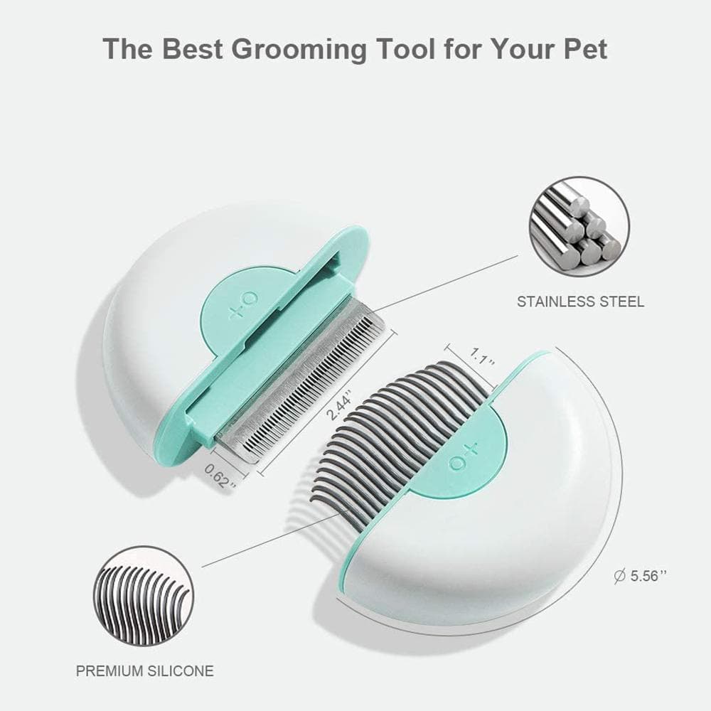 - High-quality stainless steel de-shedding comb plus massage comb.