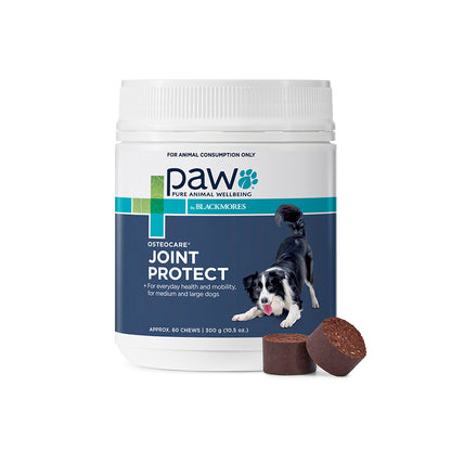 When it comes to joint health, dogs need the same kind of care as we do. That's why PAW Osteocare Joint Health Chews contain glucosamine and chondroitin, nutrients that help keep cartilage healthy and functioning properly. With a balance of vitamins and minerals, this chew can support your dog's joint health and keep them moving comfortably for years to come. So whether your furry friend is genetically predisposed to arthritis or recovering from an injury, PAW Osteocare Joint Health Chews will help get them back on their paws in no time.