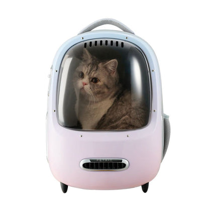 This pretty pink cat carrier is designed to make travelling as easy and comfortable as possible for you and your furry friend. Sporting a sizeable tinted window, this carrier lets your pet feel less closed-in while still allowing them to enjoy the view. Further, the built-in smart fan senses airflow and adjusts its speed to ensure that air circulates evenly throughout the carrier, keeping your kitty cool and comfy in hot weather. For those times when you’re in a darker environment (such as an aeroplane cabin), there’s also a built-in LED night light that glows slowly so as not to startle your cat.