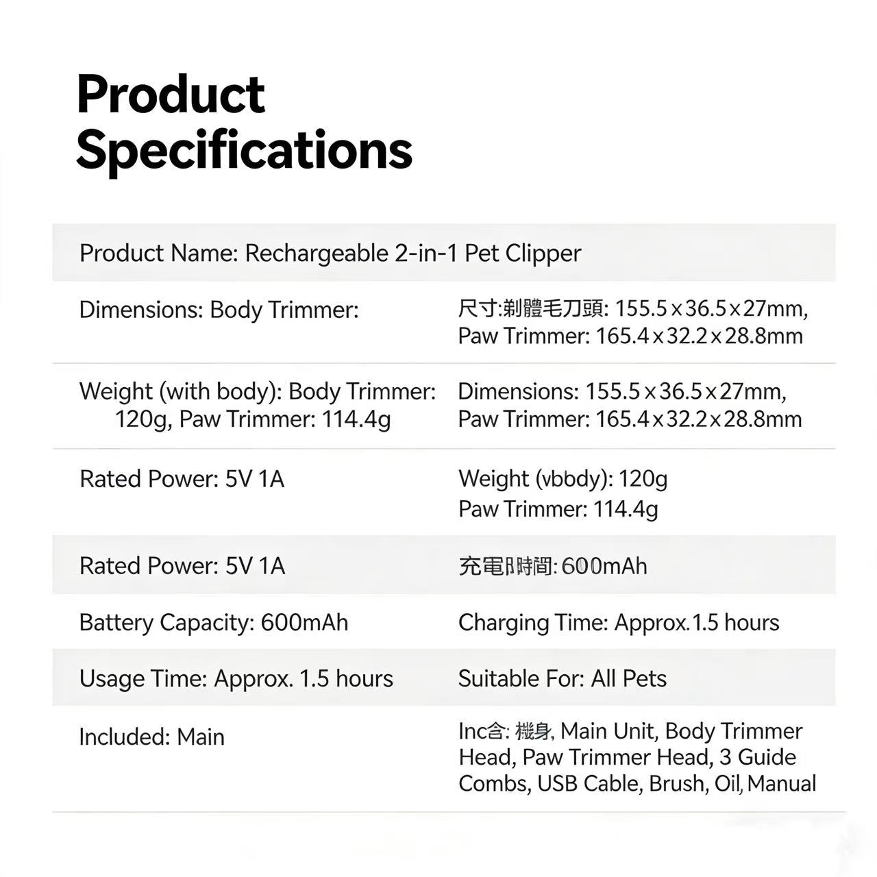 Powerful Motor: Operates at 6000–7000 RPM to effortlessly trim both thick and fine coats.