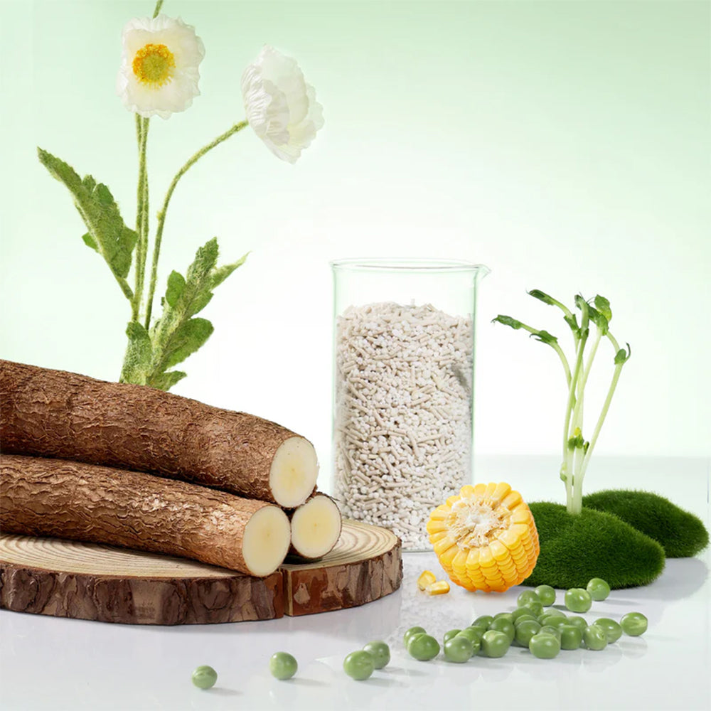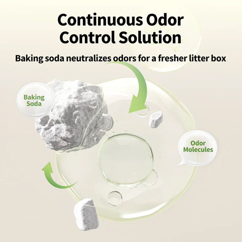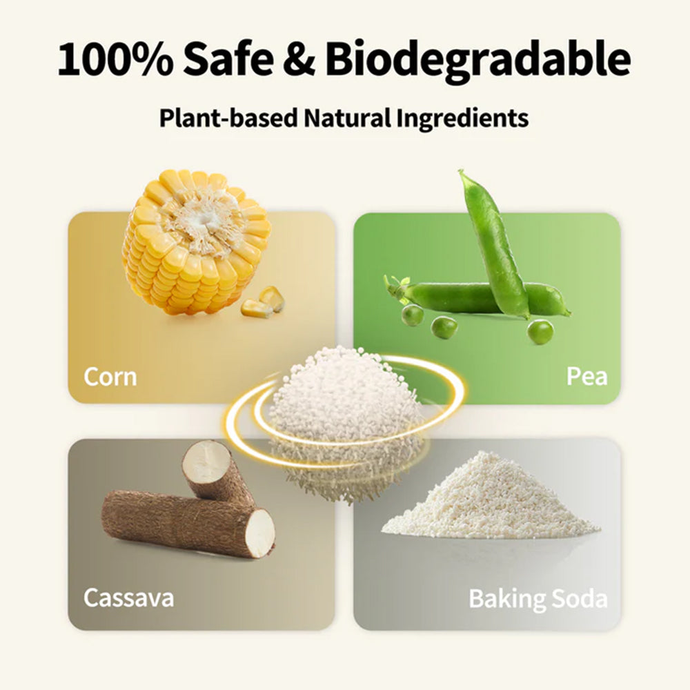 This all-natural, tofu-based litter is made from a carefully balanced mix of plant-based ingredients like corn, pea fibre, cassava, and baking soda—creating a safe, biodegradable, and effective solution for your cat’s litter tray. The formula combines 58% tofu with 40% cassava particles, designed to fill in gaps and form tight, solid clumps quickly. The addition of baking soda helps neutralise unpleasant odours by raising pH levels and reducing volatility. With ultra-low dust and a lightweight texture, this litter is gentle on your cat’s paws, easy to scoop, and low-tracking—keeping your home cleaner and fresher every day.