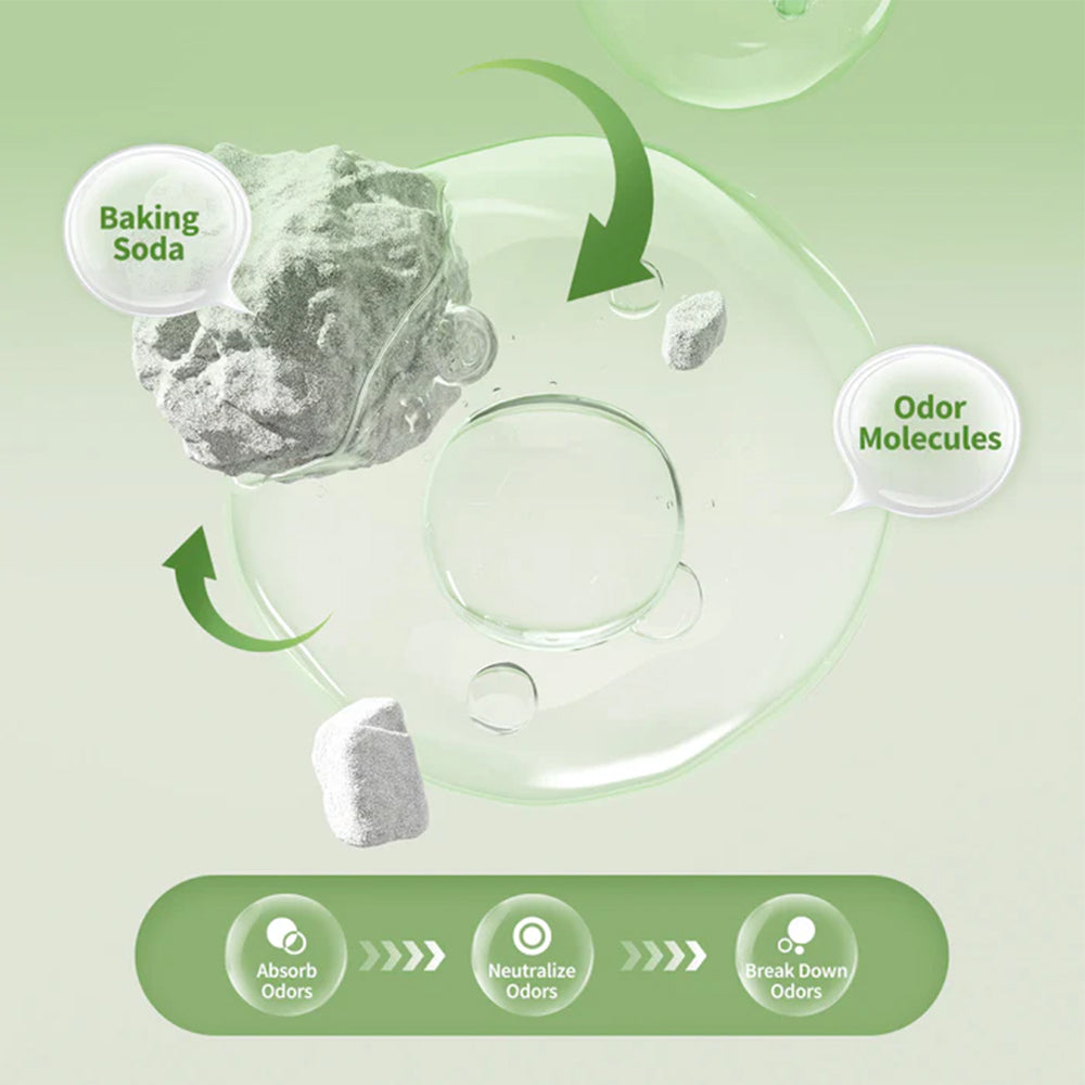 - Natural baking soda provides long-lasting odour control by neutralising waste smells