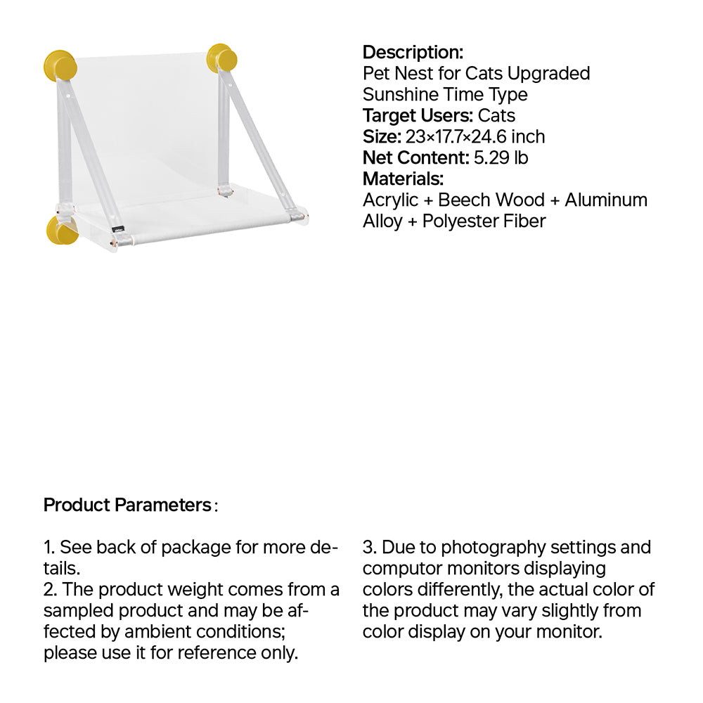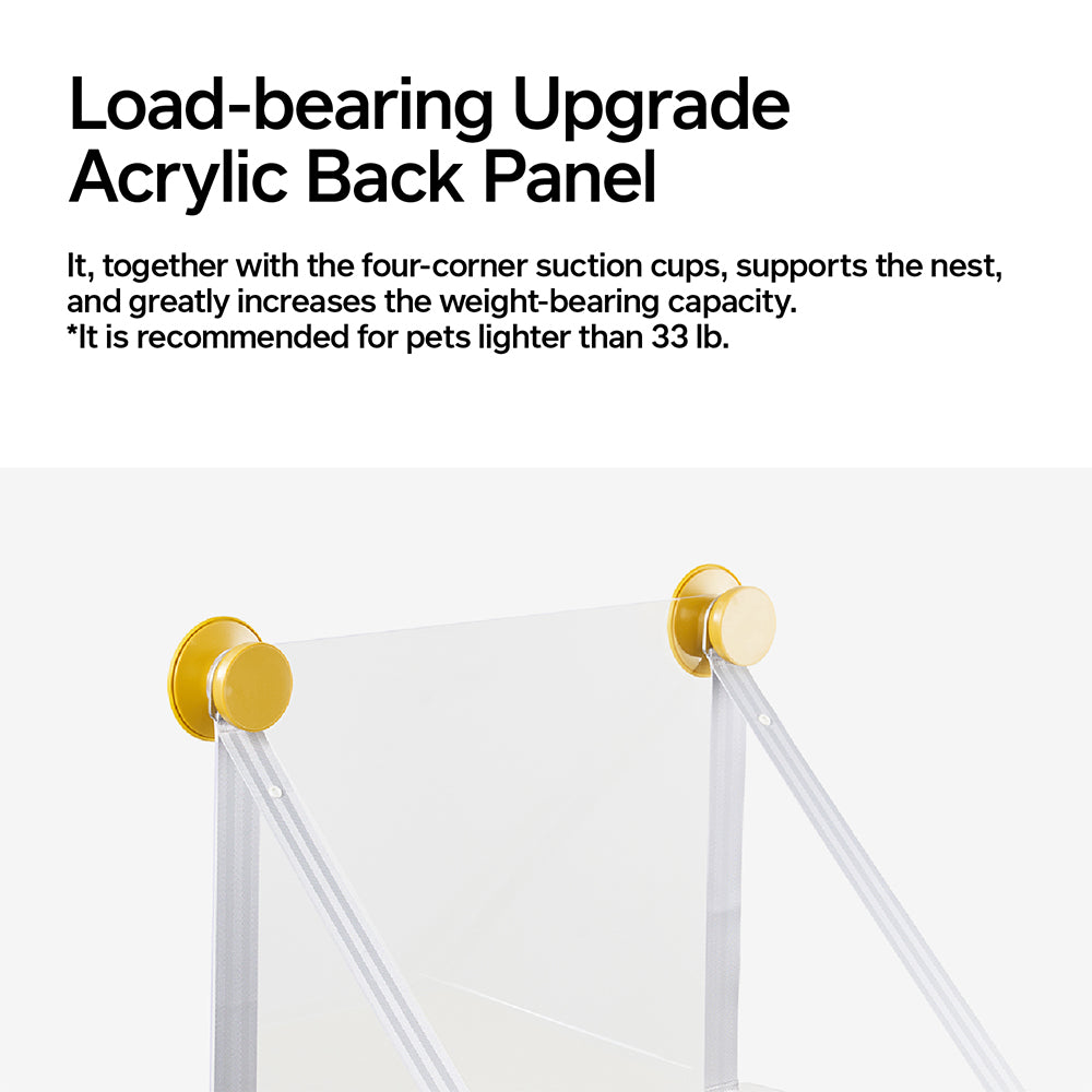 - Enhanced Stability with upgraded four-corner suction cups and a soft rubber suction cup with an edge catch ensures a secure and stable platform for your cat to lounge and play.