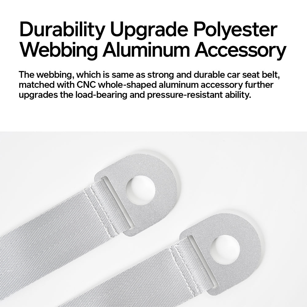 The load-bearing upgrade acrylic back panel further reinforces the bed's structural integrity, granting it a higher weight-bearing capacity. Crafted with durability in mind, the polyester webbing, combined with the CNC whole-shaped aluminium accessory, provides exceptional load-bearing and pressure-resistant capabilities.