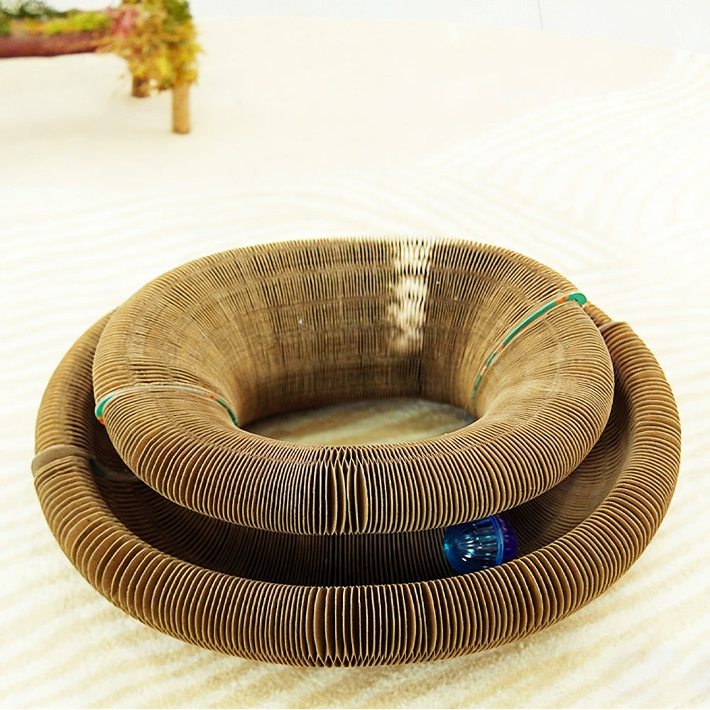Perfect for cats who love variety in their scratching surfaces. This innovative accordion scratcher promotes healthy claw maintenance, provides mental stimulation through different configurations, and keeps your furniture safe – all while adding a pop of color to your home. An essential, space-efficient scratching solution for modern cat owners.
