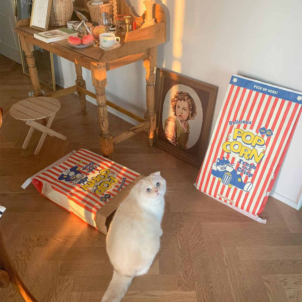 Popcorn Brown Paper Bag Pet Toy satisfies cats' instinctive urge to burrow and explore, providing ample space for two to three adult cats. Made from thick, double-layered kraft paper, it ensures durability and resilience against tearing, making it a long-lasting and enjoyable choice for feline playtime and relaxation.