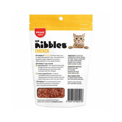 New to the market, PRIME 100 provides a range of premium quality treats for cats that are low in allergens and made from real chicken. PRIME100 SPT Pantry Nibbles Chicken Cat Training and Reward Treats 40g contain no cheap fillers and instead use 100% whole cuts of meat. Combined with an array of oils such as hemp seed oil and green-lipped mussel, these unique treats will not only taste great but also improve your cat's skin and coat while supporting their joints too!