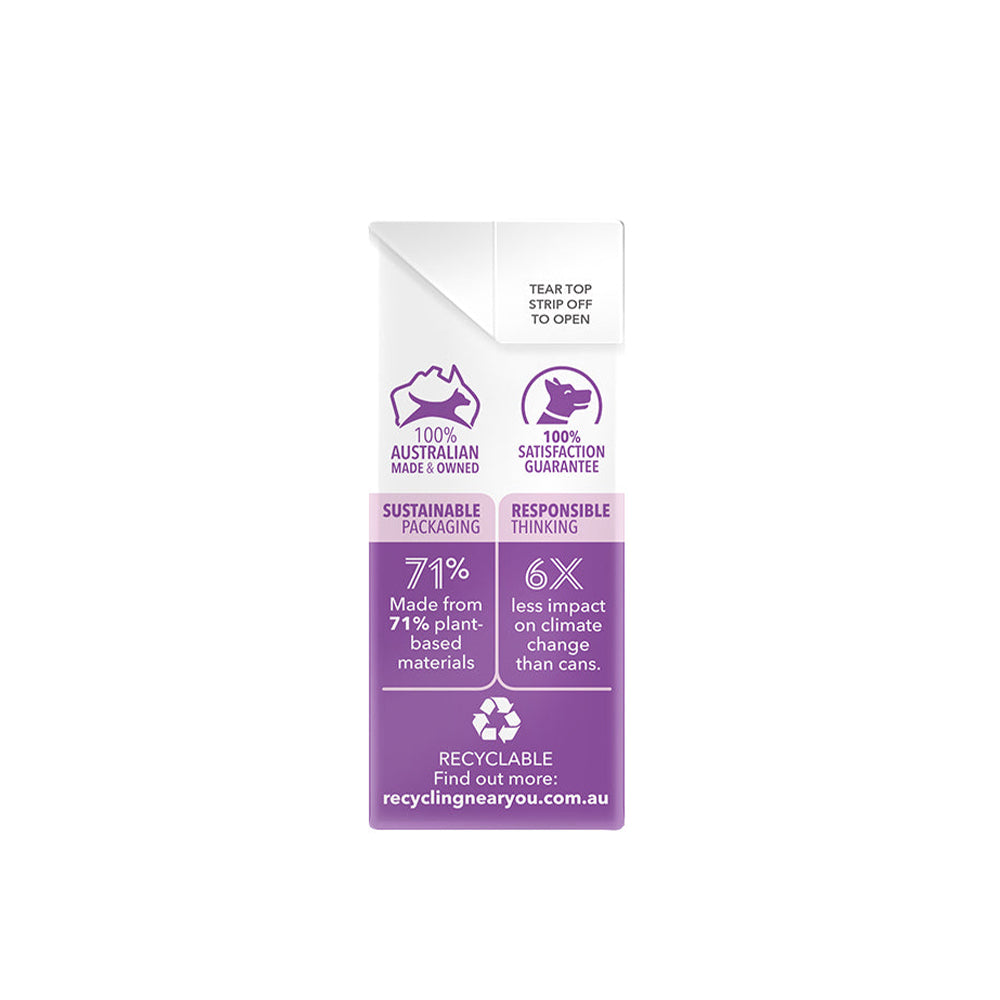 Our functional slow cooked diets combine select ingredients and crafted broth, simmered low and slow, resulting in a delicious, full flavour, wholesome diet.The packaging of our Slow Cooked For Flavour range is made from 71% plant-based materials and has 6x less impact on climate changes than cans.