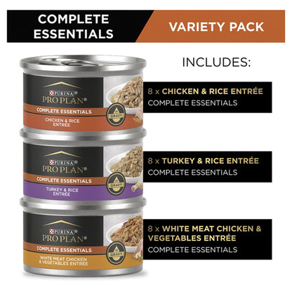 This cat food variety pack comes with three delectable PRO PLAN recipes: Chicken & Rice Entrée, Turkey & Rice Entrée, and White Meat Chicken & Vegetable Entrée.