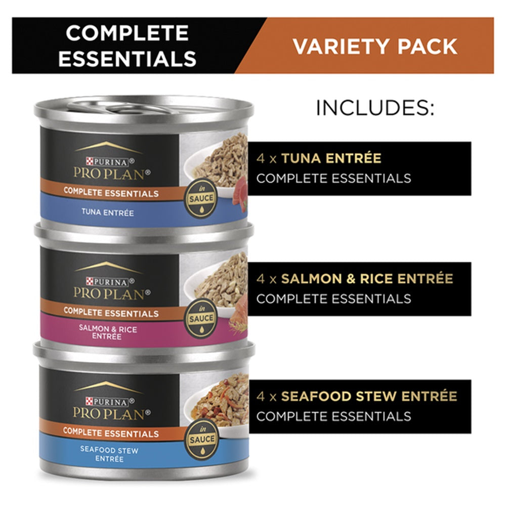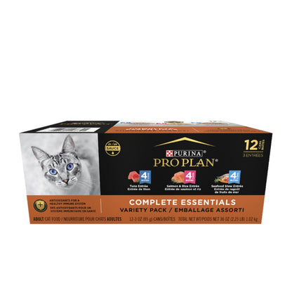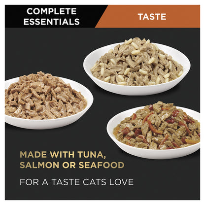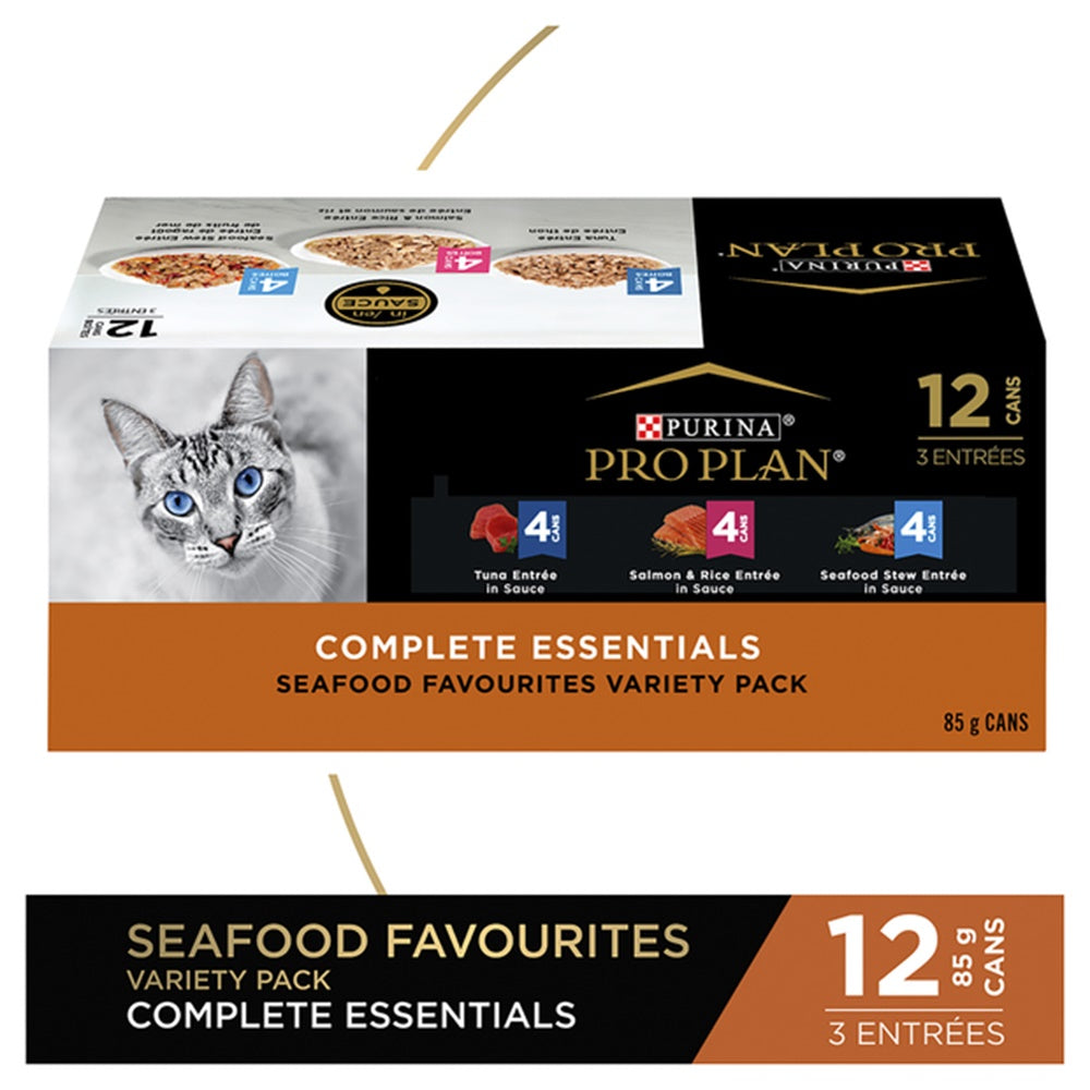 Give your feline friend the ultimate dining experience with the PRO PLAN Complete Essentials Seafood Favourites Variety Pack of wet cat food.