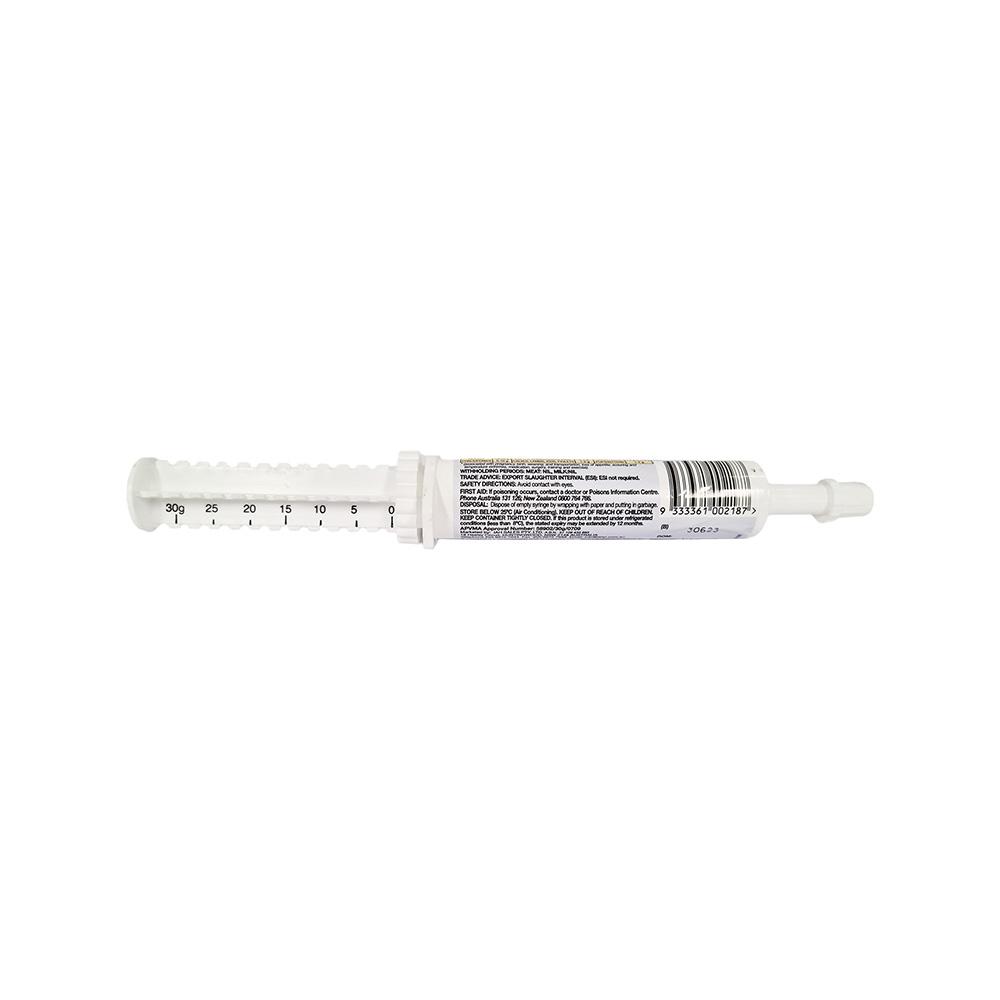 - Depress the plunger into the mouth and ensure the paste is administered on the rear of the tongue. Hold the animal's head raised for a few seconds after dosing to ensure the paste is swallowed.