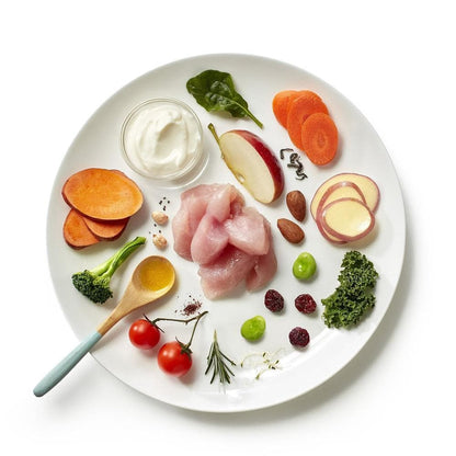 Chicken Meal & Chicken Freeze Dried Meat, Faba Beans, Chickpeas, Pea Protein, Chicken Fat with Mixed Tocopherols & Rosemary Extract, Chicken Gravy, Potato Starch, Vitamins & Minerals (including Calcium, Phosphorus, Potassium, Magnesium, Iron, Copper, Manganese, Zinc, Iodine, Selenium, Vitamins A, C, D3, E, B1, B2, B3, B5, B6, B9, B12, Choline), Beet Pulp, Sunflower Oil, Sea Salt, Flax Seed Oil, Chicory Extract, Fish Oil, Coconut Oil, Egg Powder, Taurine, DL Methionine, Yucca Extract, Emu Oil, Carrot, Yoghurt Powder, Spinach Powder, Broccoli Powder, Kale Powder, Alfalfa Meal, Dried Apple, Tomato Powder, Chia Seed, Kelp Powder, Sweet Potato Powder, Turmeric, Almond Flour, Parsley, Sumac, Green Tea, Blueberry Extract, Cranberry Extract.