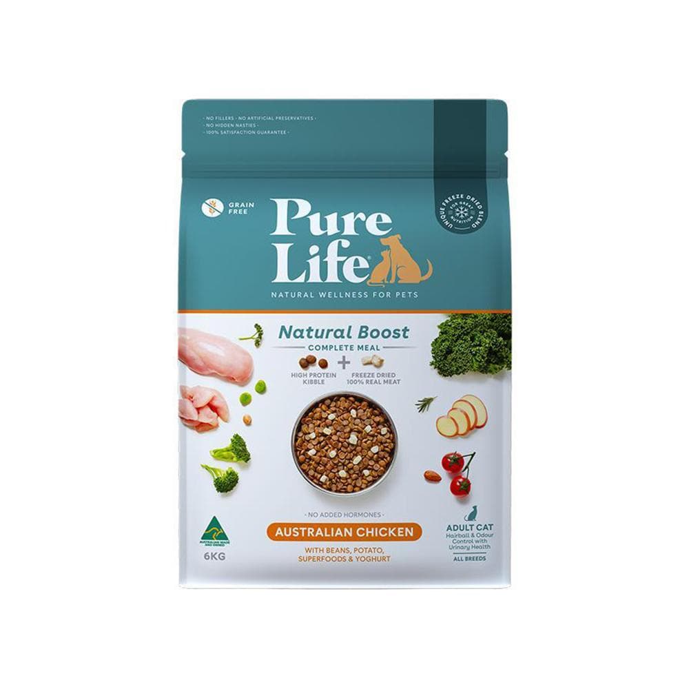 Reward your kitty while providing them with the best of nature today with the PURE LIFE Natural Boost Chicken Grain Free Cat Food for Adult Cats 6kg! Being 100% Australian-made and owned along with the 96% local and freshly sourced ingredients, this cat dry food consists of only the best chunks of freeze-dried and protein-rich chewy meat! The superfood blends are added with natural fibres, antioxidants and vitamins for maximum performance and digestion health for your cat. Having a natural source of Omega 3 fatty acids will support naturally shiny skin and coat while allowing their joints to be in perfect condition and reduce the chances of inflammation.