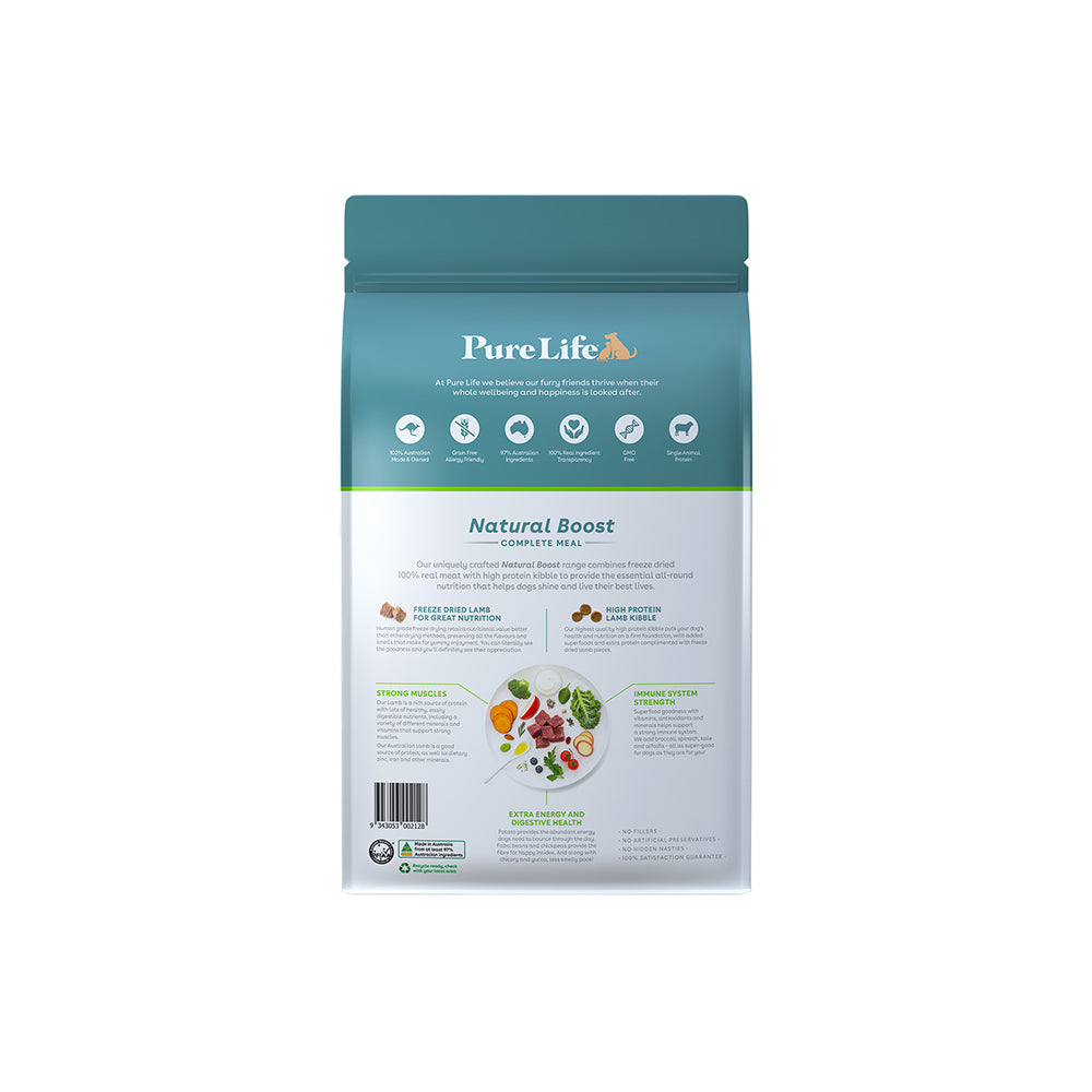 PURE LIFE Natural Boost Lamb Adult Dog Food is a delicious and highly nutritious premium kibble made from freeze-dried lamb, ensuring maximum shelf life and improved nutritional value. It’s free from grains, fillers, artificial ingredients, GMOs and preservatives, but is packed with vitamins, minerals and antioxidants for your dog’s health. And unlike other dry foods that may be too expensive or not appealing to your pet, this one’s affordable. We promise you won’t find any other brand as good as this one anywhere in the world.