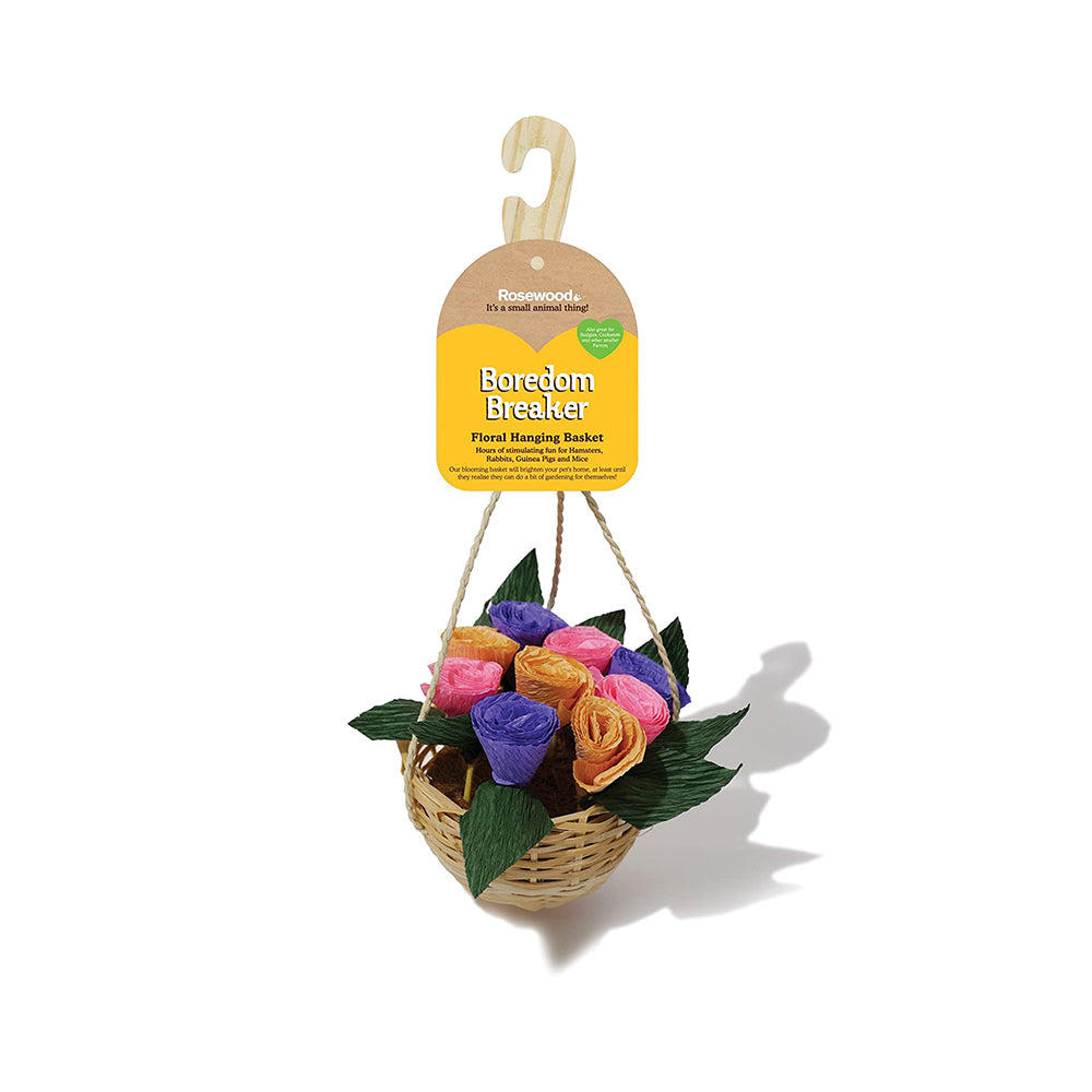Brighten up any small animal cage or rabbit hutch with ROSEWOOD Floral Hanging Basket Small Animal Activity Toy - a beautiful, colourful toy produced from natural materials that your small fuzzy will have great pleasure biting away at or tossing around that is until your pet finds that it can also be used as a chew and toss toy!