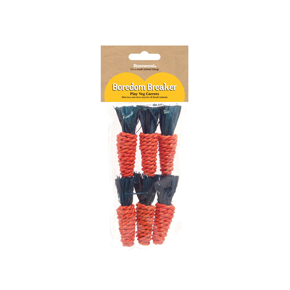 Well, we've got the perfect solution! The ROSEWOOD Mini Sisal Carrots Small Animal Activity Toy is perfect for keeping your furry friend entertained. It's made of safe, lightweight materials and has little beans on the inside that will rattle, providing stimulation for your pet. Plus, it's double-sided so your pet can flip, fling and fetch it to its heart's content.