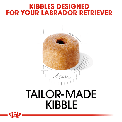 - The kibble’s shape, size, texture and formula are adapted to the Labrador Retriever puppy.