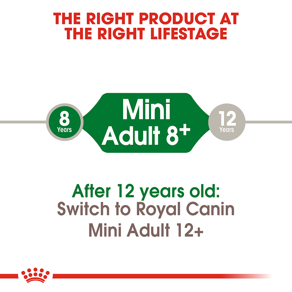 ROYAL CANIN Mini Adult 8+ is formulated with all the nutritional needs of your small dog in mind, perfect for maintaining a healthy weight. It also maintains vitality in small dogs like yours who are facing the first signs of ageing. With Fussy taste being a concern for some vets, ROYAL CANIN Mini Adult 8+ palatability is premium and highly palatable for small breed dogs.