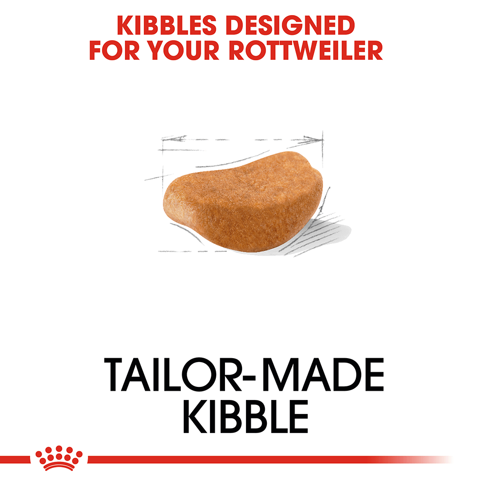 - A kibble exclusively designed to make it easier for the Rottweiler to pick up and to encourage him to chew.