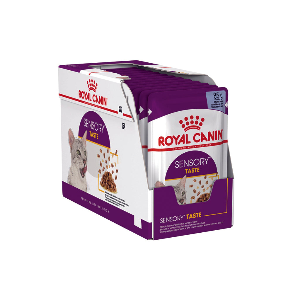 Royal Canin Sensory Taste Jelly Adult Cat Wet Food 85gx12 is designed to cater to feline taste preferences, enhancing their overall feeding experience by stimulating their unique sense of taste. The formula aligns with the optimal macro-nutrient profile naturally preferred by adult cats. Additionally, it supports a healthy urinary system, ensuring comprehensive well-being for your feline companions.