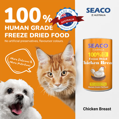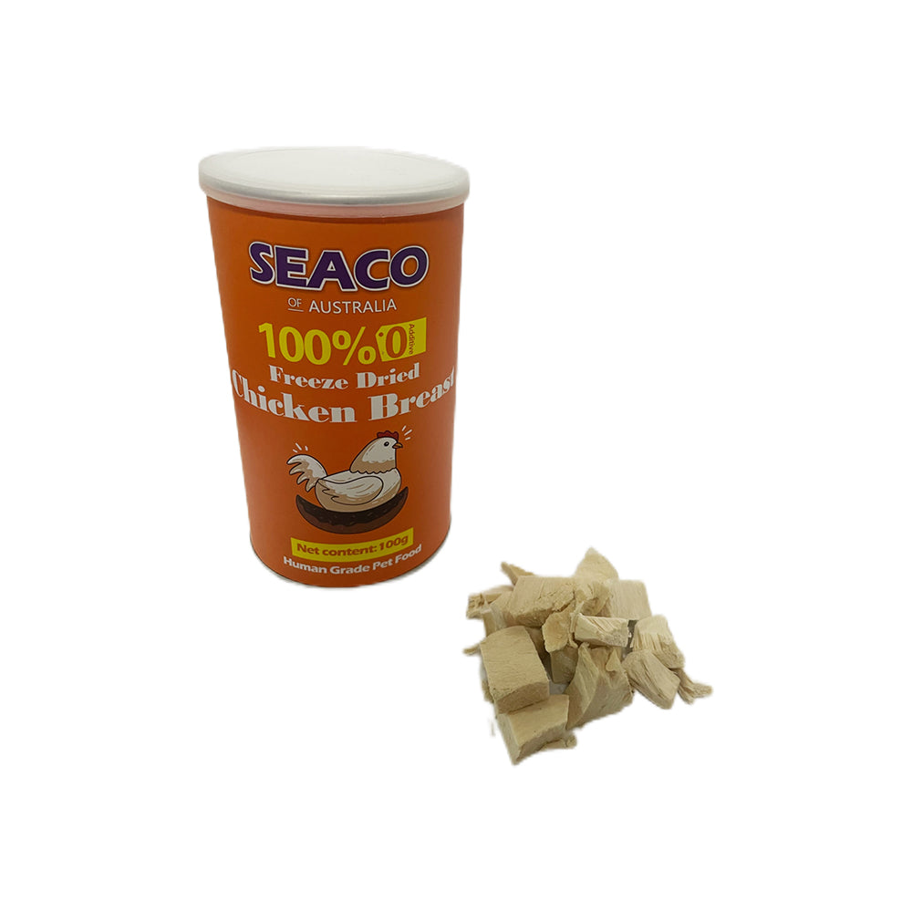 SEACO Chicken Breast Freeze Dried Pet Food, distinguished by high-quality, human-grade ingredients and certifications like HACCP and NASAA Organic, offers unparalleled nutrition. Utilizing advanced -45 degrees freezing for optimal protein preservation, it ensures maximum nutritional benefits. This protein-rich, low-fat diet enhances muscle development and supports a lean lifestyle for pets. Enriched with essential vitamins, it ensures a balanced diet, promoting overall health and wellness. The food's formulation not only improves fur quality, giving pets a radiant coat, but is also gentle on sensitive stomachs, making it ideal for delicate digestion. Additionally, it aids in healthy weight management, making it a comprehensive choice for pet nourishment.