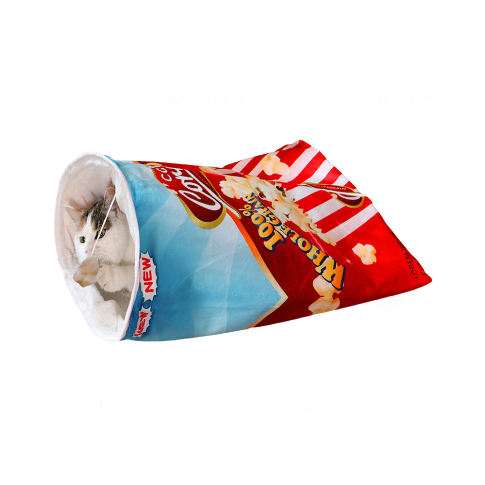 This Crinkle Cat Sack keeps your cat entertained and prevents loneliness when you're not home. Made from durable crinkle paper, it withstands rough play and produces engaging rustling sounds. The small decorative accessories at the entrance attract cats. The compact, foldable design takes up little space, making it perfect for small areas. The tunnel is versatile for playing, sleeping, and lounging, supported by a strong round steel wire frame. Its large opening allows easy entry and exit for any cat, and it features a beautiful printed pattern.