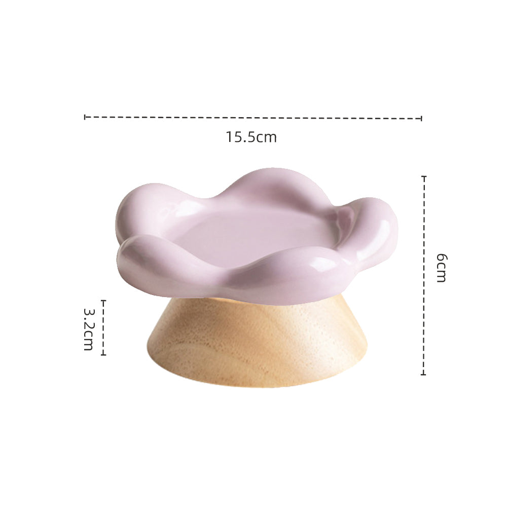 This adorable flower-shaped bowl enhances home décor while its shallow design keeps faces clean during eating. Its modular design allows for pet growth, and the detachable Velcro ensures easy assembly. Made from easy-to-clean ceramic, it's dishwasher and microwave safe. With stable Velcro for security and selected wood for durability, it offers both aesthetic appeal and functionality. Crafted from solid wood, it ensures safety and health for worry-free use.