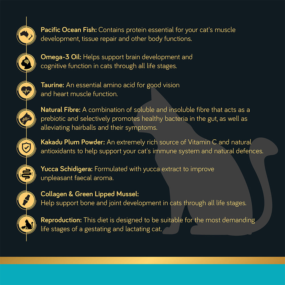 With a dash of Kakadu Plum, a superfood that supports your cat's immune system and combined with Omega-3 & Omge-6 Oils, Marine Collagen, Green Lipped Mussel, and has Natural Fibre source, making it a cat food feast, but it also makes it an excellent choice for cats with food allergies or dietary intolerances.