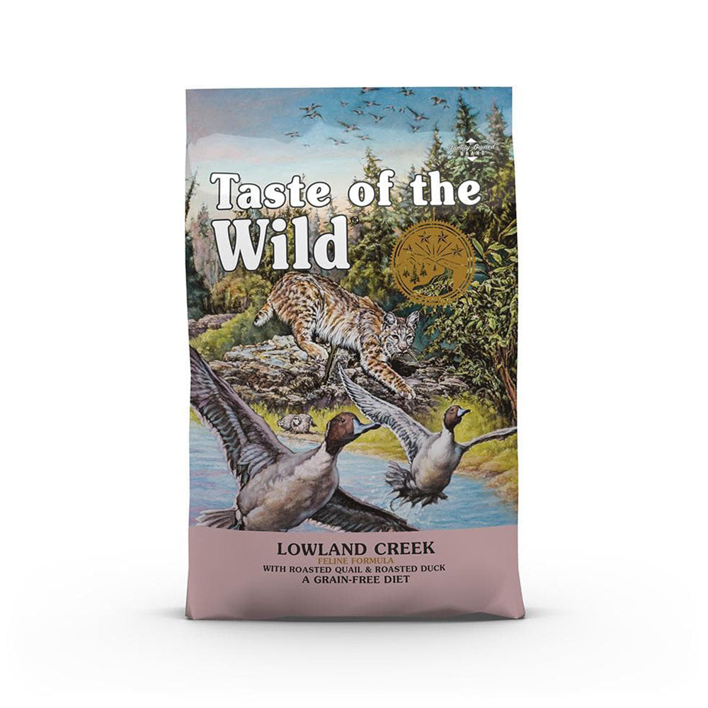 TASTE OF THE WILD Lowland Creek Feline 2kg is for your cat, who deserves more than just food that looks like it. Cage-free quail and duck are packed with protein that's gentle on the stomach. Taurine keeps their heart-healthy and their eyes looking good, phosphorus helps filter waste from kidneys, antioxidants maintain overall well-being...so they get to enjoy meat feeding in kibble form!