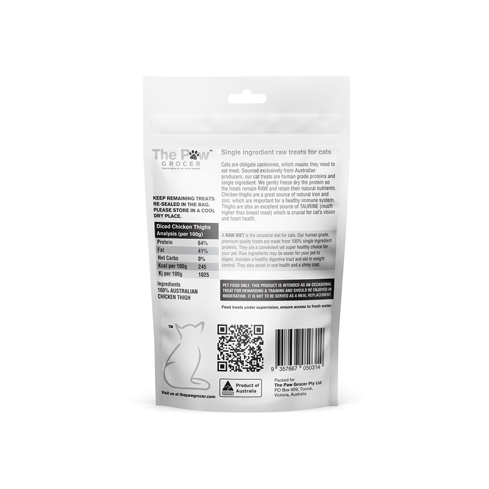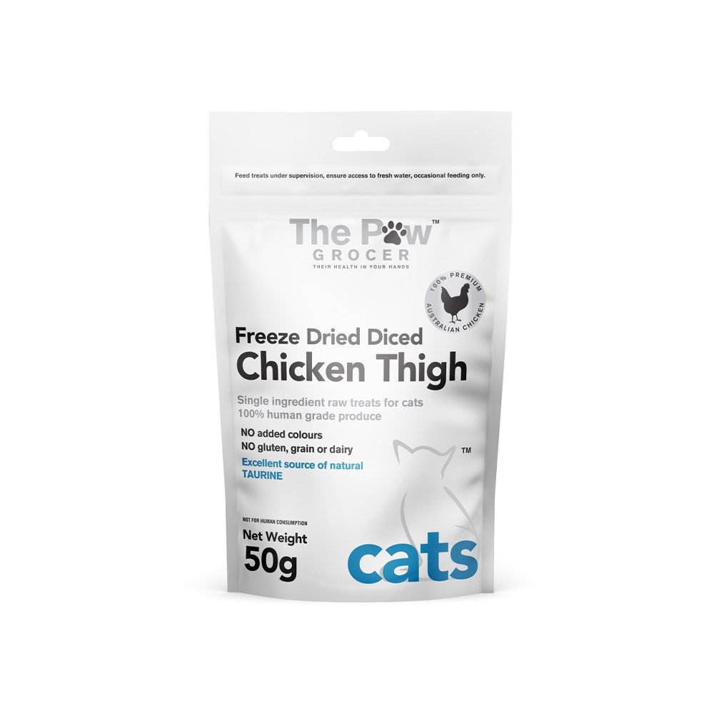 - The Paw Grocer's chicken thighs are sourced from Australian farms, and freeze-dried in Tasmania.