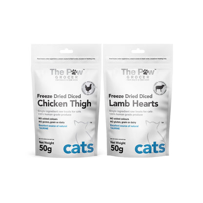 Discover THE PAW GROCER Freeze Dried Cat Treats – an exquisite collection sourced exclusively from 100% Australian proteins, delivering delectable flavours and biologically appropriate goodness. Through meticulous freeze-drying, we preserve the raw essence and essential nutrients without compromise. Embracing simplicity, each treat is thoughtfully crafted with a sole ingredient – pure Australian proteins, entirely free from additives. Tailored for feline friends, these protein-rich treats are ideal for training, rewarding, or elevating meals, ensuring a daily dose of nutrition and joy for cats of all sizes. Treat your beloved feline companion to the premium quality of THE PAW GROCER, where simplicity meets feline delight.