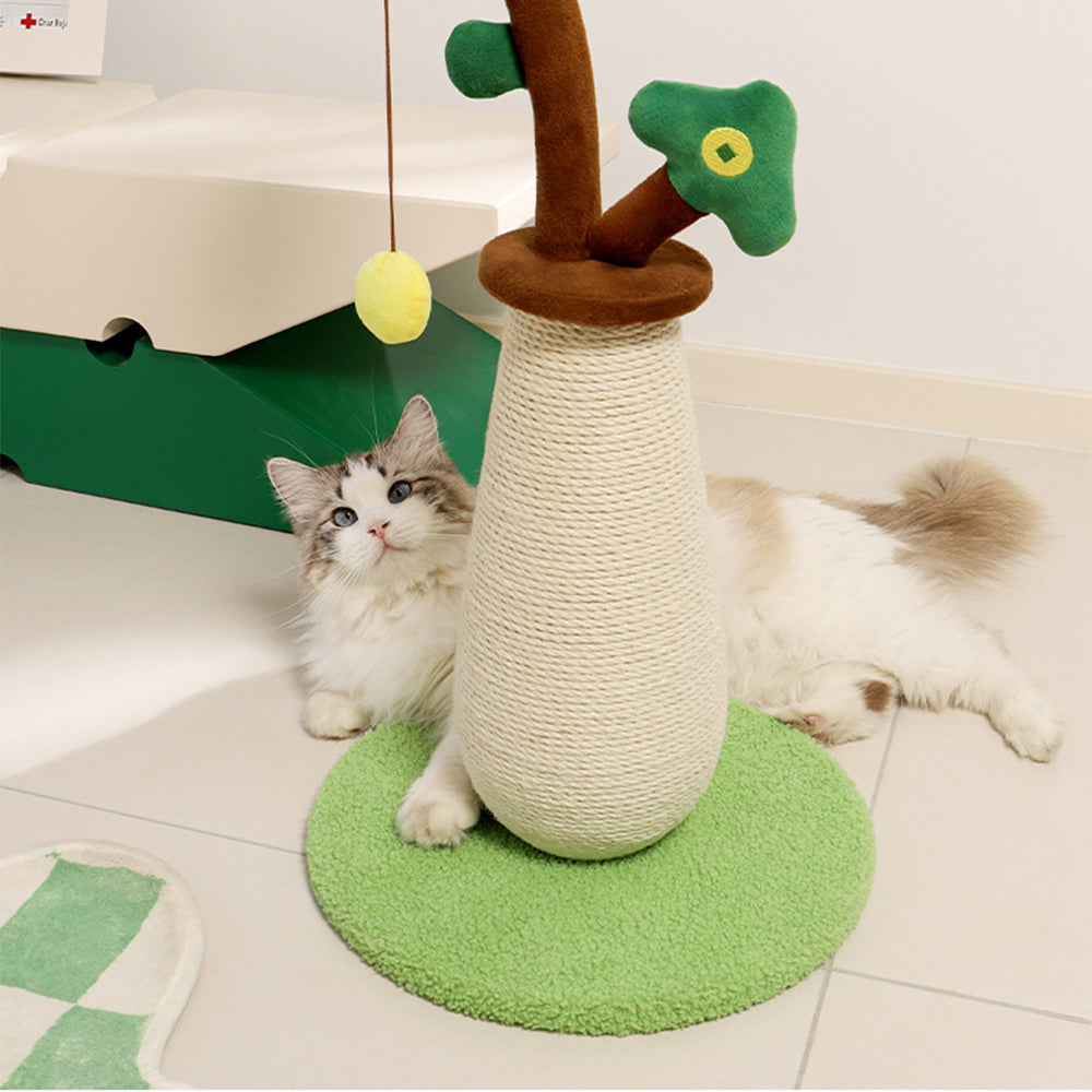 Bring nature indoors with our charming tree-shaped sisal cat scratching post with hanging toy. This creative multi-level design mimics a natural tree, providing multiple scratching surfaces and perching spots while the interactive hanging toy adds extra entertainment ¨C all in one attractive, space-saving structure.
