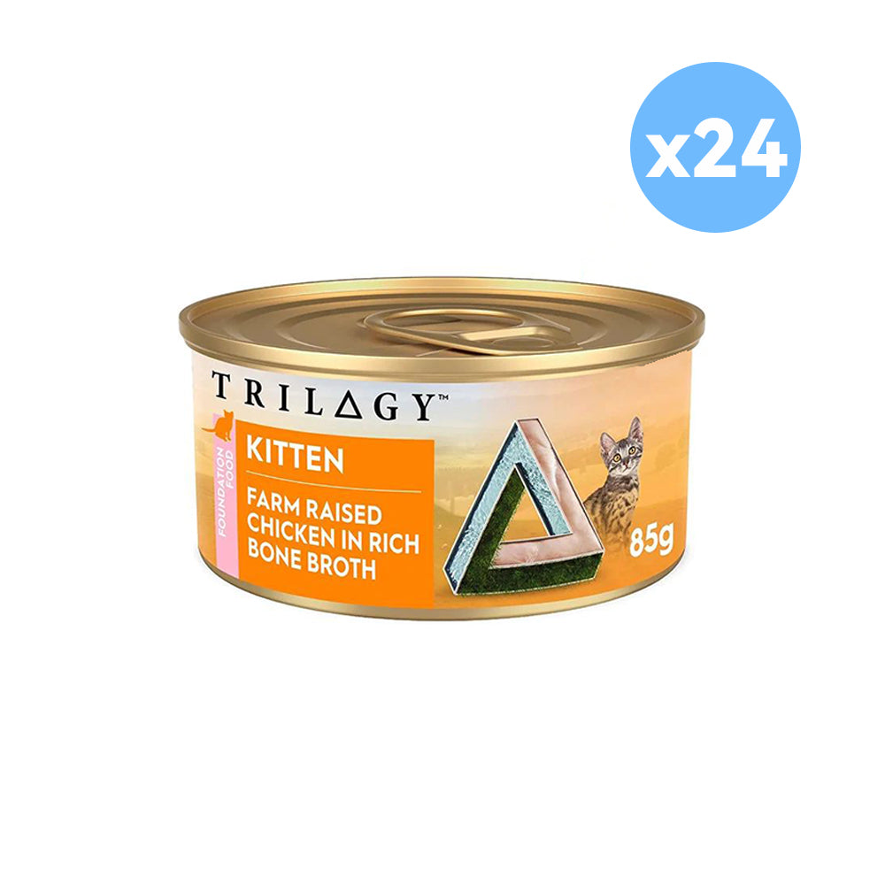 - TRILOGY™ Kitten Farm Raised Chicken in Rich Bone Broth is formulated to meet the nutritional levels established by the AAFCO Cat Food Nutrient Profiles for Growth.