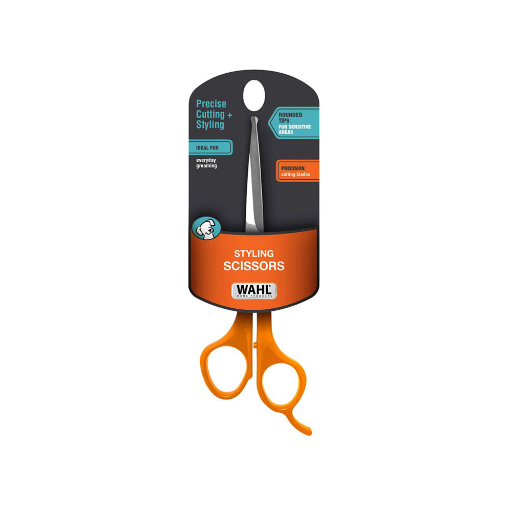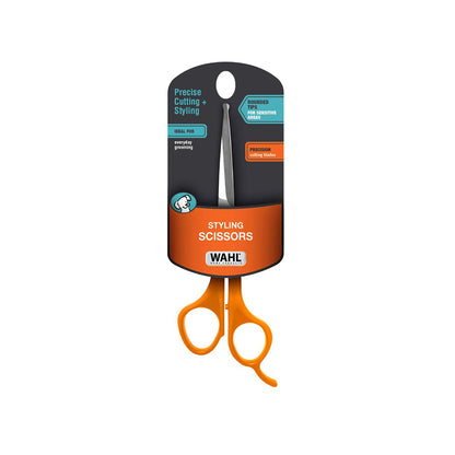 For detailed and refined grooming, turn to the Wahl Styling Scissors. These scissors are designed to trim your pet's coat, shape paws, refine facial features, and effectively handle mats or knots. With their rounded tips, you can groom your pet safely, and the high-quality stainless steel construction guarantees durability.