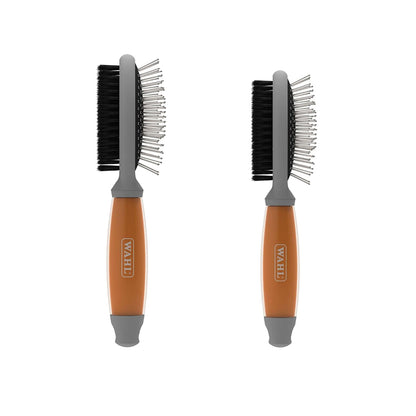 Groom your pet in comfort with the Wahl Double Sided Brush. Its non-slip ergonomic gel* handle makes handling the brush simple.