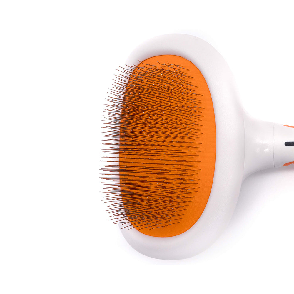 - Stainless steel pins are angled to safely remove shedding hair and mats from your pet's coat.