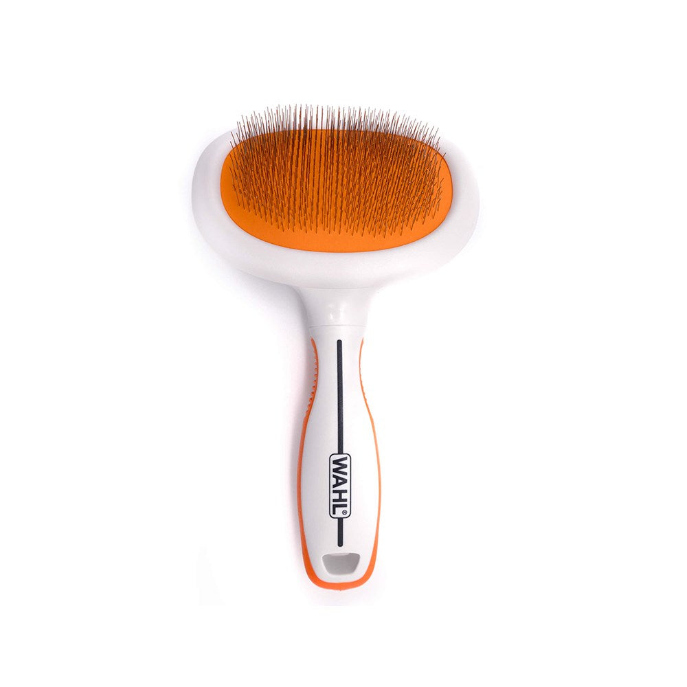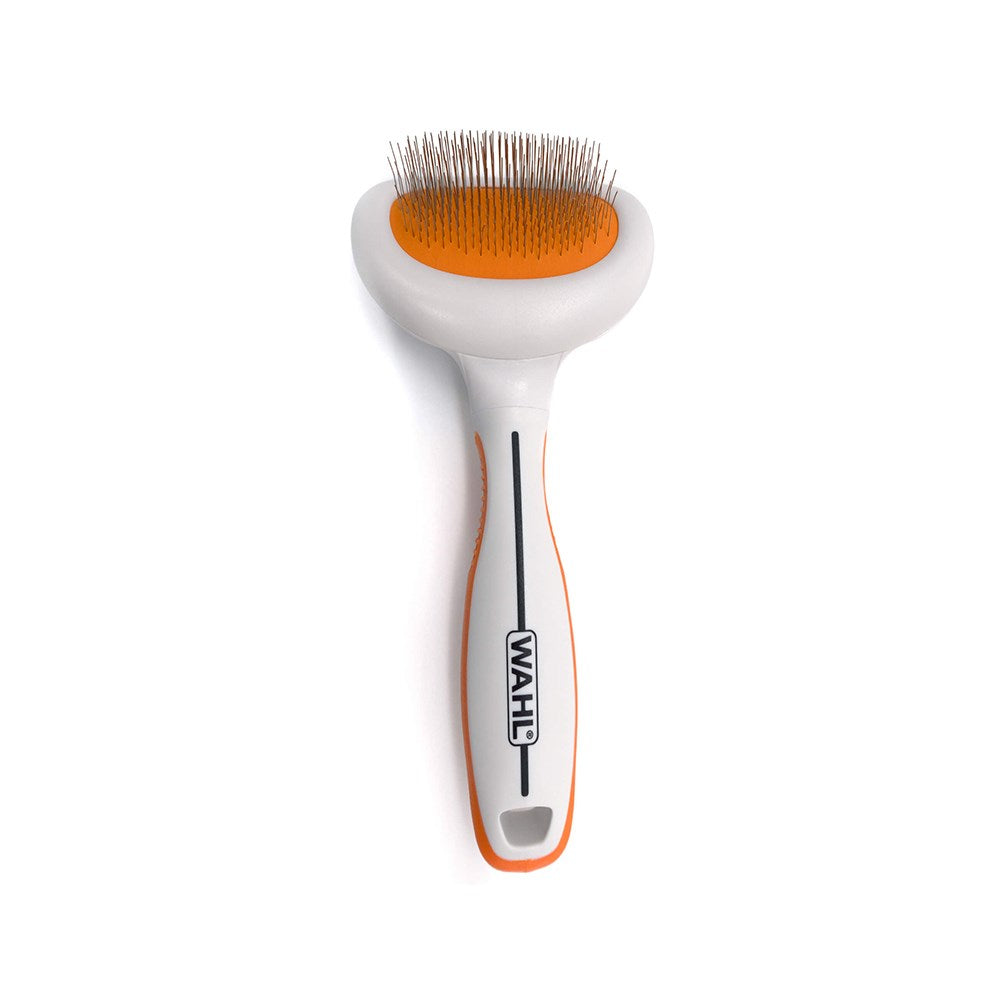 The stainless-steel pins guarantee unmatched strength and durability, and the ergonomic, soft rubber grip handle ensures easy handling during use. Brushing your pet not only maintains their health but also creates valuable bonding time. Keep your dog, cat, horse, or other animals in top shape by removing dirt that could lead to irritation and infection with the WAHL Metal Slicker Brush.