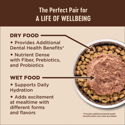 Deboned Turkey, Turkey Meal, Deboned Chicken, Chicken Meal, Peas, Herring Meal, Chicken Fat (preserved with Mixed Tocopherols), Dried Ground Potatoes, Tomato Pomace, Ground Flaxseed, Salmon Oil, Natural Chicken Flavor, Cranberries, Chicory Root Extract, Choline Chloride, Taurine, Vitamin E Supplement, Dried Kelp, Zinc Proteinate, Mixed Tocopherols (added to preserve freshness), Zinc Sulfate, Calcium Carbonate, Niacin, Iron Proteinate, Ferrous Sulfate, Yucca Schidigera Extract, Vitamin A Supplement, Copper Sulfate, Thiamine Mononitrate, Copper Proteinate, Manganese Proteinate, Manganese Sulfate, d-Calcium Pantothenate, Sodium Selenite, Pyridoxine Hydrochloride, Riboflavin, Vitamin D3 Supplement, Biotin, Calcium Iodate, Vitamin B12 Supplement, Folic Acid, Ascorbic Acid (Vitamin C), Dried Lactobacillus plantarum Fermentation Product, Dried Enterococcus faecium Fermentation Product, Dried Lactobacillus casei Fermentation Product, Dried Lactobacillus acidophilus Fermentation Product, Rosemary Extract, Green Tea Extract, Spearmint Extract.