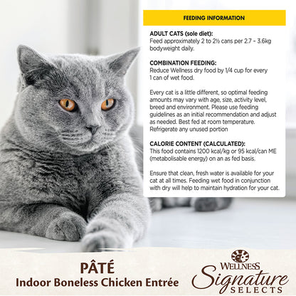 - COMBINATION FEEDING:Reduce Wellness dry food by 1/4 cup for every1 can of wet food.Every cat is a little different, so optimal feedingamounts may vary with age, size, activity level,breed and environment. Please use feedingguidelines as an initial recommendation and adjustas needed. Best fed at room temperature.Refrigerate any unused portion